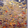 Through this change, Murray's work began to take on an atmospheric feel, revealing the natural world as a as sensation, as energy and flow. Murray uses a flat knife to first push the color into the canvas. Colors are then layered short, quick horizontal spurts, creating a complex web of marks that recalls the lapping of water over pebbles, light diffused through leaves. Although she uses a limited palette of red, black, white and yellow, their layering and repetition reveals infinite subtleties.