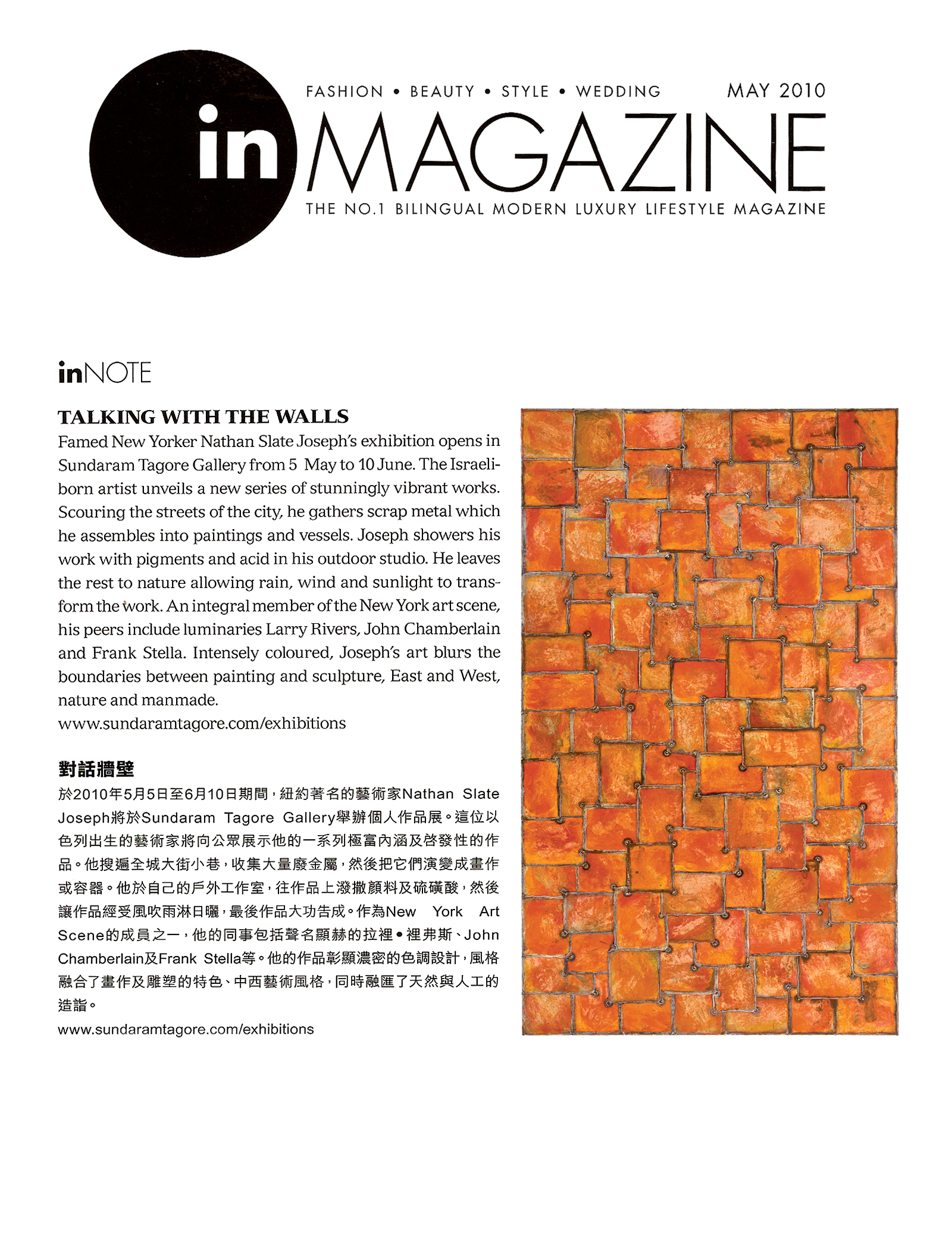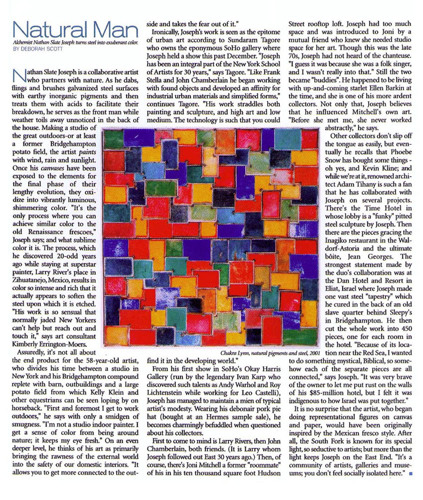 (Joseph's work appears in the publication image. His piece graces the dining room wall of Jean Georges, a New York restaurant that overlooks Columbus Circle.)