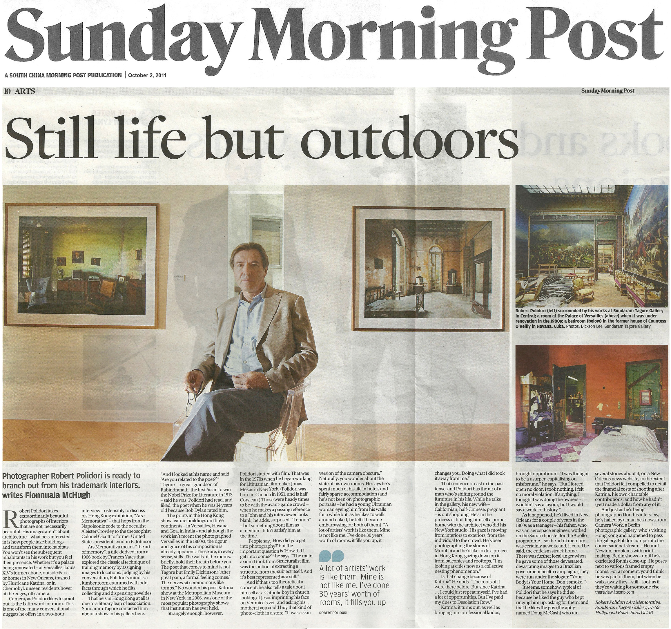 Robert Polidori's haunting photographs if interiors and buildings reveal the everyday lives left behind in Chernobyl, Havana, New Orleans, and Versailles by Hilarie M. Sheets.
